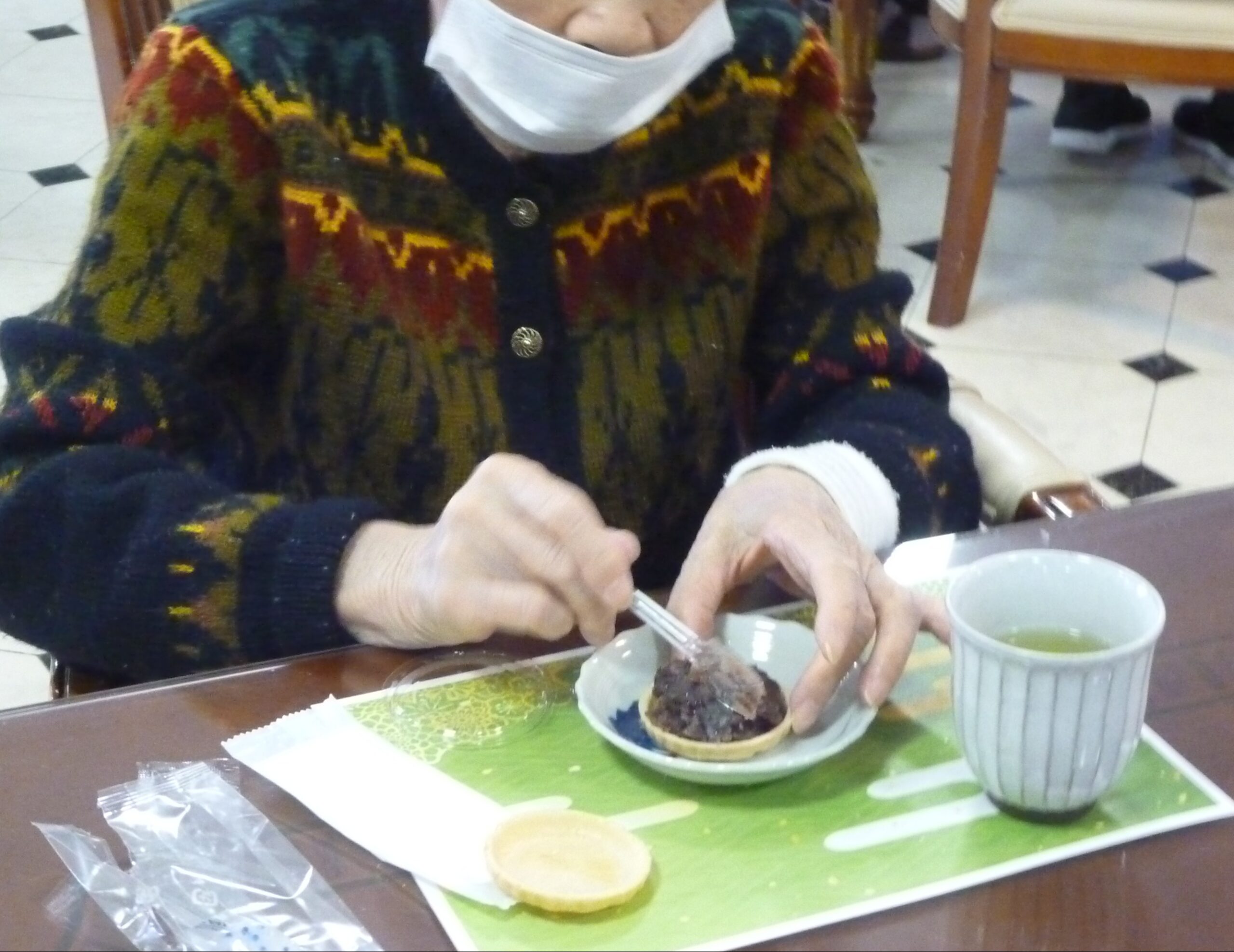 今日のレクリエーション「もなかづくり」