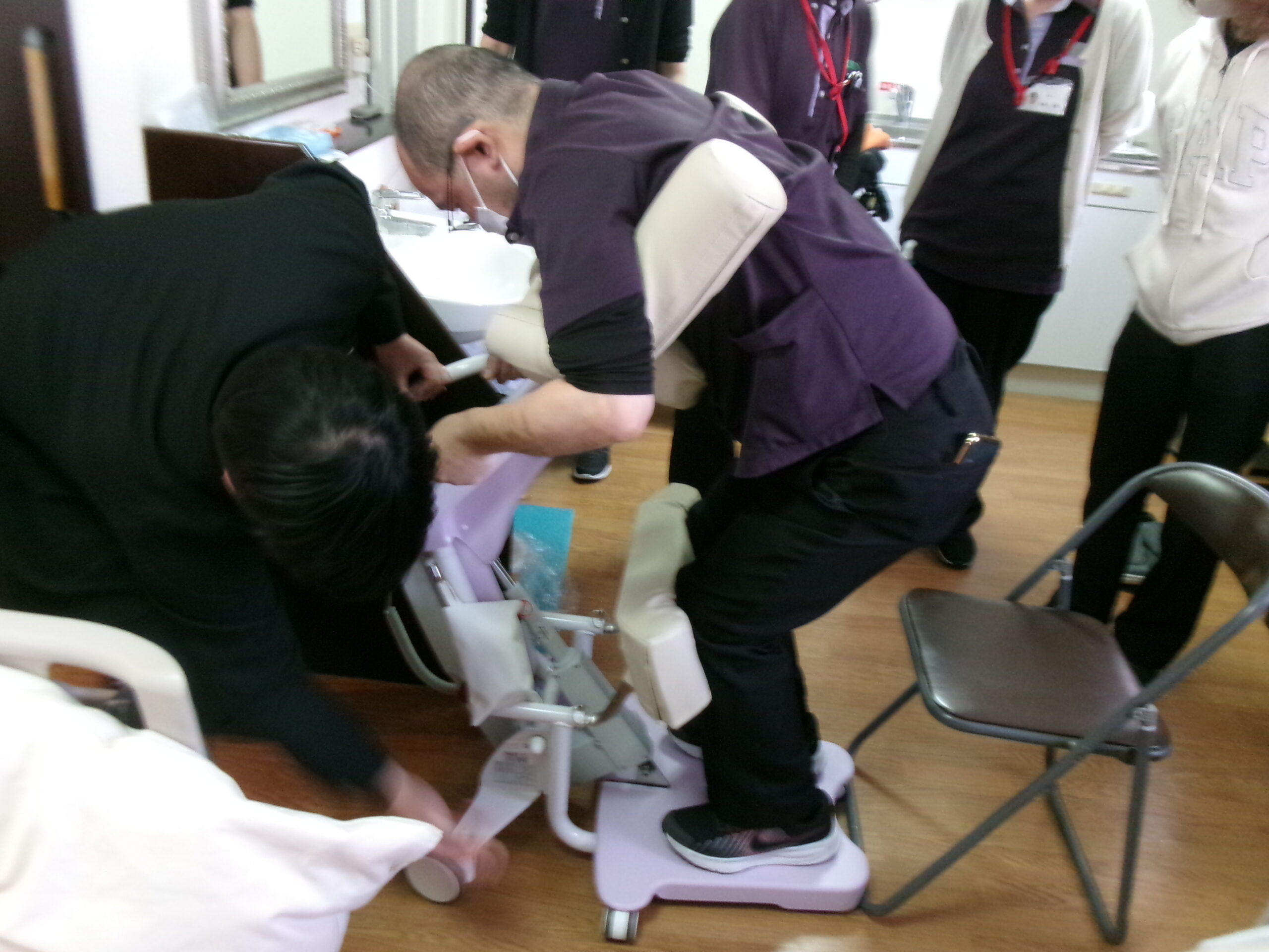 一人の男性は「うん、いいよ」と安定した移乗を介助させて頂きました。初めてこのような